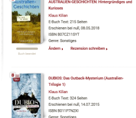 Ganz großartig sind dann noch die interaktiven Möglichkeiten, die das e-book bietet. Für den interessierten Leser eröffnet es ungeahnte Möglichkeiten, by the way sehr viel über Australien zu erfahren. Klaus Kilian kennt sich dort offenbar gut aus. Eigentlich müsste das australische Tourist board den Autor für diesen Marketingansatz extra entlohnen. Ich jedenfalls bin gespannt, wie sich das in der Fortsetzung von „Dubios“ weiterentwickelt.