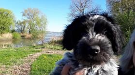 Mit Begeisteung hat die 12 Wochen alte Schapendoeshündin fünf Bücher von AUSTRALIEN-GESCHICHTEN zerfleddert.