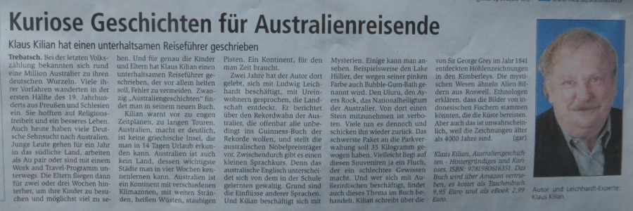 Ob vom Naturwissenschaftlicher Verein Niederlausitz, Leichhardt-Museum Trebatsch, Leichhardt-Land, Meldungen in der MOZ, Lausitzer Rundschau, Hamburger Wochenblatt oder gar im australischen Radio ... schreiben Sie einfach an Kilian-Autor.de