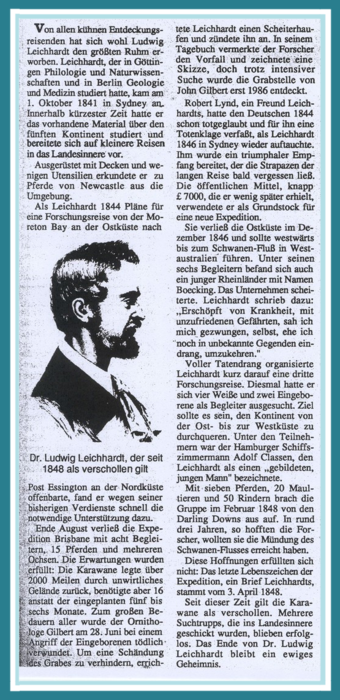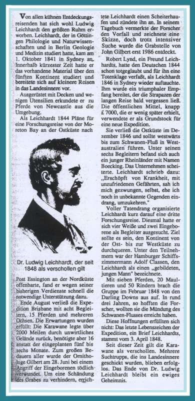 Alles begann 1973 mit einem Artikel* über Ludwig Leichhardt in 'Die Woche in Australien':